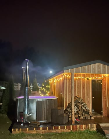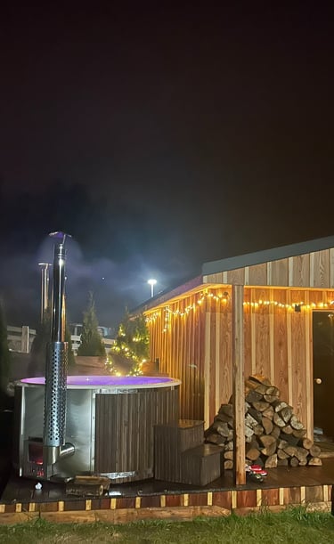 Jacuzzi ogrzewane drewnem na chłodniejsze dni oraz przyjemne orzeźwienie latem