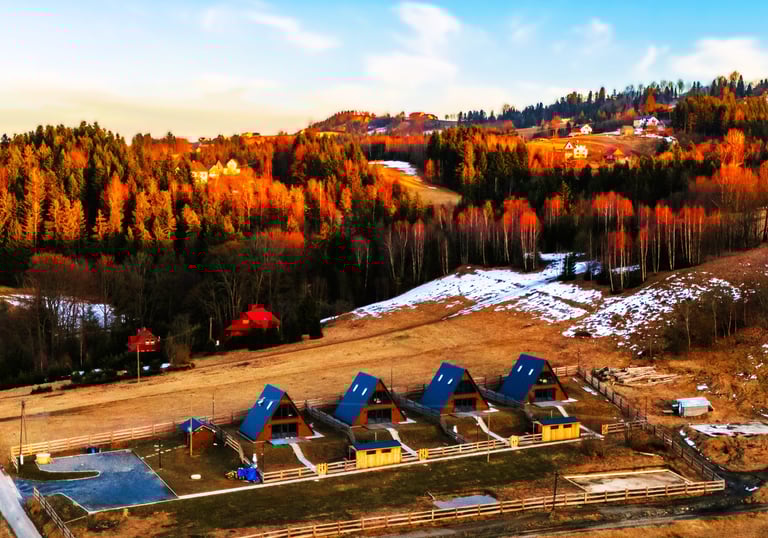 Oferujemy wyjątkowe domki na wynajem w Koniakowie, idealne na całoroczne wypady. Nasze trójkątne domki zapewniają komfort i relaks w otoczeniu natury i górskich krajobrazów.