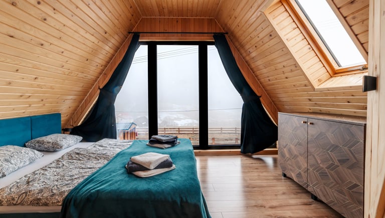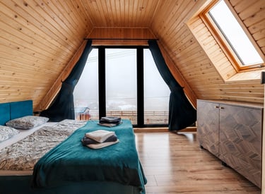 Nasze domki wyposażone są w dwie komfortowe sypialnie, zapewniające wygodny sen dla wszystkich gości.